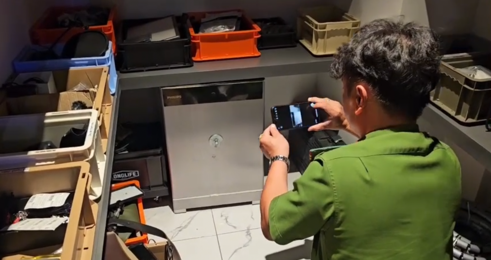Cơ quan điều tra phát hiện két sắt tại nơi ở của Ngân 98 – Ảnh: Công an TP.HCM