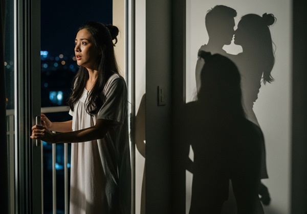 Dưới ánh trăng mờ ảo và ánh đèn vàng hắt lên từ khe cửa sổ nhà bên cạnh, Hùng – chồng cô – không hề chạy bộ. Anh đang “tập thể dục” thật, nhưng là trên một chiếc đệm du lịch trải sẵn ở góc khuất sau bồn nước inox. Và “bạn tập” của anh không ai khác chính là Ngân. Ngân mặc chiếc váy ngủ mỏng tang, quấn lấy Hùng như con trăn. Hai người họ quấn quýt, mồ hôi nhễ nhại.