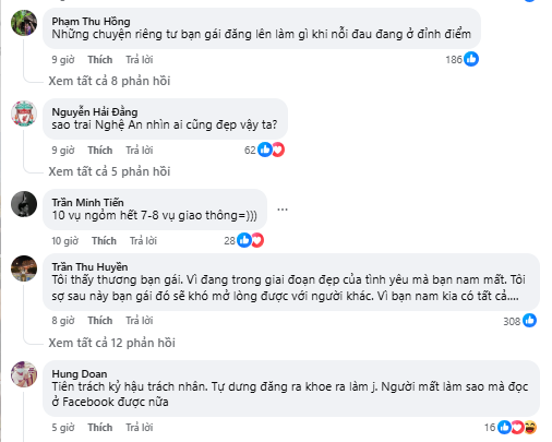 Chỉ vì đăng những khoảnh khắc yêu đương lên MXH để tưởng nhớ tình yêu đẹp dang dở, bạn gái của chàng cán bộ ngoại giao trẻ tuổi vô tình nhận tranh cãi. Người mất đã mất rồi, người ở lại còn khổ sở vì những lời bình luận ác ý của CDM. Cô gái quá bức xúc, đau buồn nên quyết định ẩn trang cá nhân, khóa bình luận vì những ý kiến trái chiều, lạnh tanh vô cảm của lòng người. Tiếc cho tình yêu dang dở, thương em trai, thương cả em gái ở lại, ở trong hoàn cảnh ấy mới hiểu… Xin chia buồn cùng gia đình và 2 bạn.