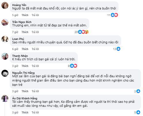 Chỉ thời gian ngắn sau khi đăng tải, đoạn clip được cộng đồng mạng chia sẻ. Phía dưới tâm sự nặng trĩu này, nhiều người để lại nhiều bình luận động viên và chia buồn đến H.A. và gia đình.