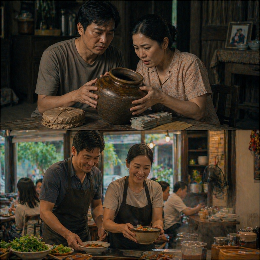 Từ số tiền ấy, họ mở một quán ăn nhỏ mang tên “Mắm Thắm Quán”, chuyên đồ quê, bán bánh đúc, bún riêu, mắm tôm – thứ mà trước kia Ngọc từng sợ.