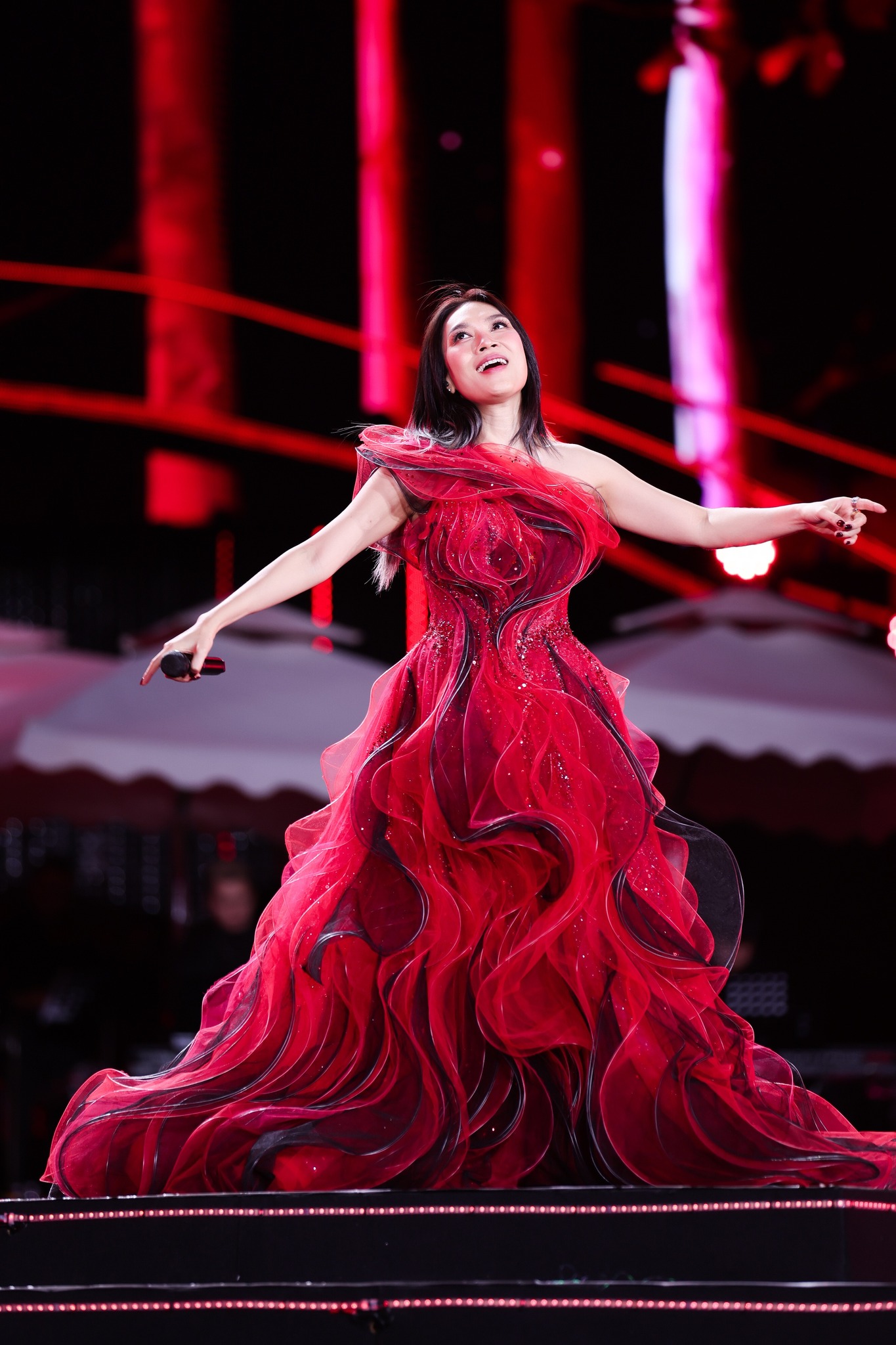 Ở góc độ sản xuất, See The Light tiếp tục cho thấy vị thế của Mỹ Tâm như một người đặt chuẩn. Sân khấu lớn, thiết kế mở với catwalk dài, hệ thống LED và hiệu ứng ánh sáng phủ kín không gian, cùng cách dàn dựng tập trung vào trải nghiệm tổng thể của khán giả. Mỹ Tâm thay đổi nhiều trang phục, nhưng không biến concert thành một “fashion show”. Khách mời xuất hiện vừa đủ, không lấn át câu chuyện chính. Trọng tâm vẫn là giọng hát và năng lượng trình diễn của một nghệ sĩ đã đứng trên sân khấu hơn hai thập kỷ, nhưng vẫn đủ thể lực và cảm xúc để đi trọn gần 4 tiếng đồng hồ.