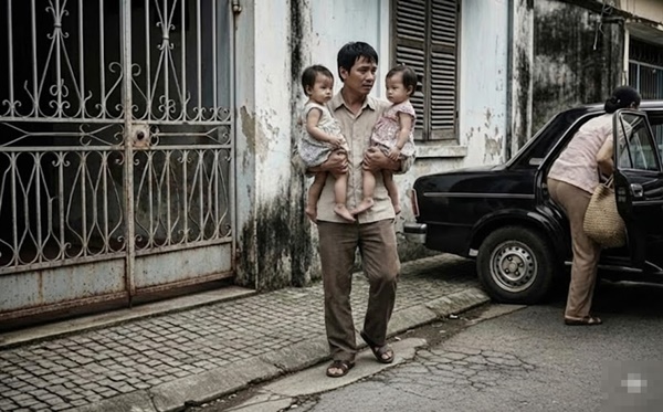 Ông Hùng, người đàn ông 55 tuổi nhưng mái tóc đã bạc trắng, làn da đen sạm khắc khổ, đứng trước cổng đón khách. Đôi bàn tay chai sần, thô ráp, nứt nẻ vì sương gió run run chỉnh lại vạt áo vest – thứ trang phục cả đời ông chưa từng dám mơ tới. Đứng hai bên ông là Ngọc và Ngà – hai cô con gái sinh đôi xinh đẹp, khí chất sang trọng, hiện đều là giám đốc của những công ty lớn trên thành phố.