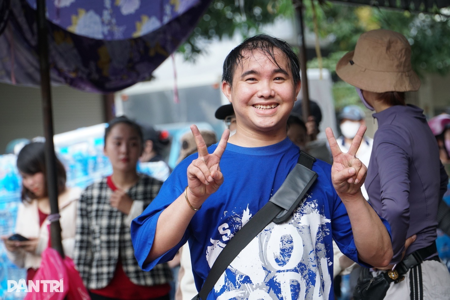 Các tình nguyện viên đứng xếp hàng từ điểm tập kết đến thùng xe. Từng gói hàng được chuyền tay từ người này qua người khác. Dù đổ mồ hôi dưới trời oi bức, ai cũng hoan hỉ, quên đi sự mệt mỏi.