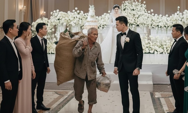 Bảo vệ định lôi ông ra, nhưng Tuấn đã nhìn thấy. Sợ khách khứa chú ý làm mất mặt, Tuấn sầm sập lao tới, giọng rít qua kẽ răng: – “Này ông già! Đi chỗ khác kiếm ăn! Đây là đám cưới 5 sao, không phải bãi rác. Biến ngay cho khuất mắt tôi”! Ông già run rẩy, ngước đôi mắt kèm nhèm lên, giọng thều thào: – “Cậu ơi… làm phúc cho lão xin chút đồ thừa. Lão đói quá… ba ngày nay chưa có gì vào bụng”…