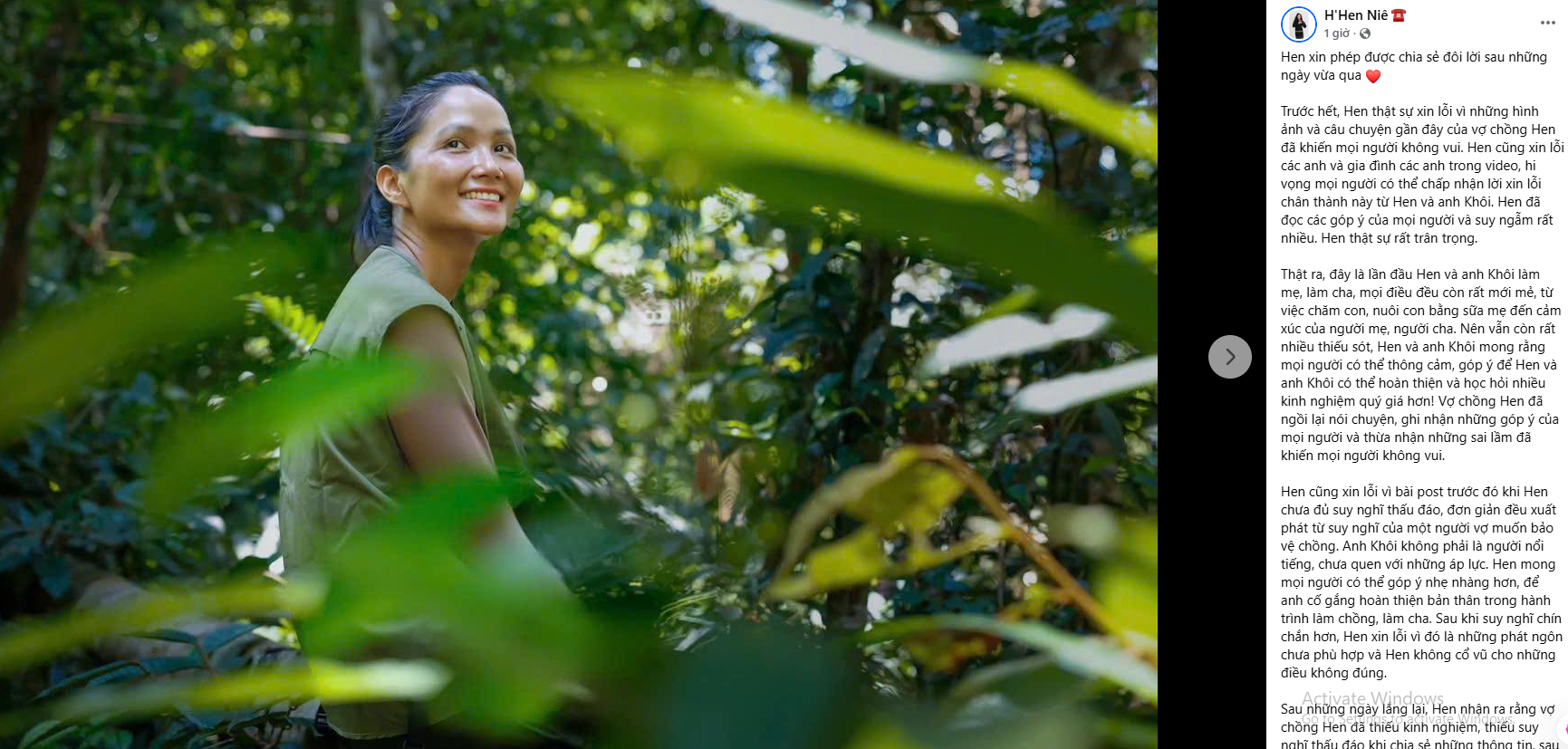 Hen và anh Khôi sẽ rút kinh nghiệm, cẩn trọng hơn, và tiếp tục học hỏi mỗi ngày để trở thành những người cha mẹ tốt hơn, và những người có trách nhiệm hơn trong từng hành động, lời nói”- H’hen Niê chia sẻ.