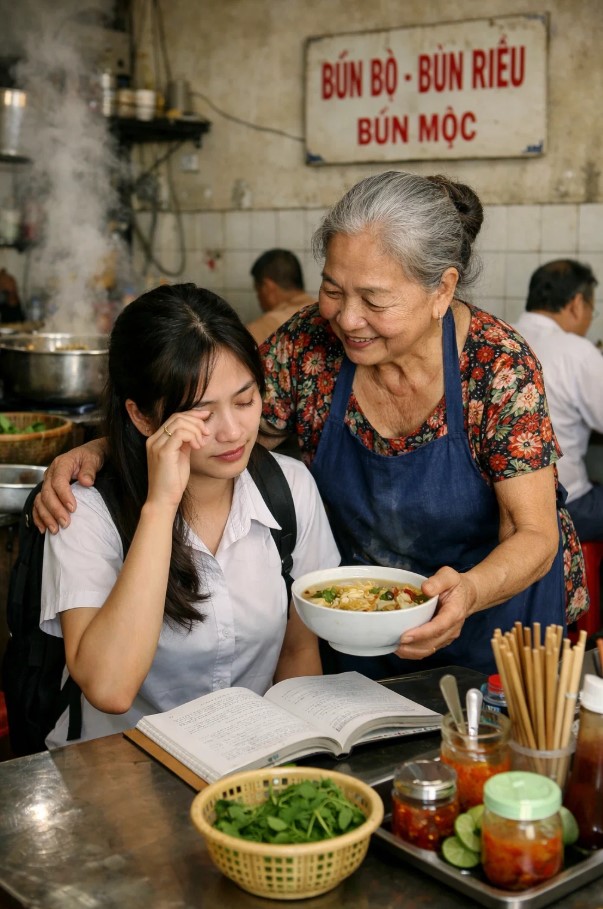 Từ hôm đó, mỗi buổi trưa cô đều ghé quán. Có hôm cô chỉ định gọi bát canh, nhưng bà chủ quán vẫn lặng lẽ múc thêm cơm, gắp thêm miếng trứng hay miếng cá nhỏ.