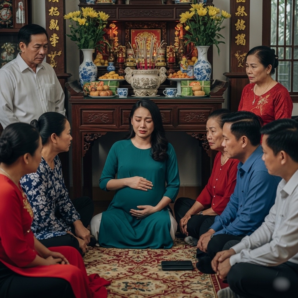 Trang đứng giữa căn nhà, tay ôm bụng, đôi mắt ngấn nước. “Đây là con của anh Khánh. Con xin thề.”