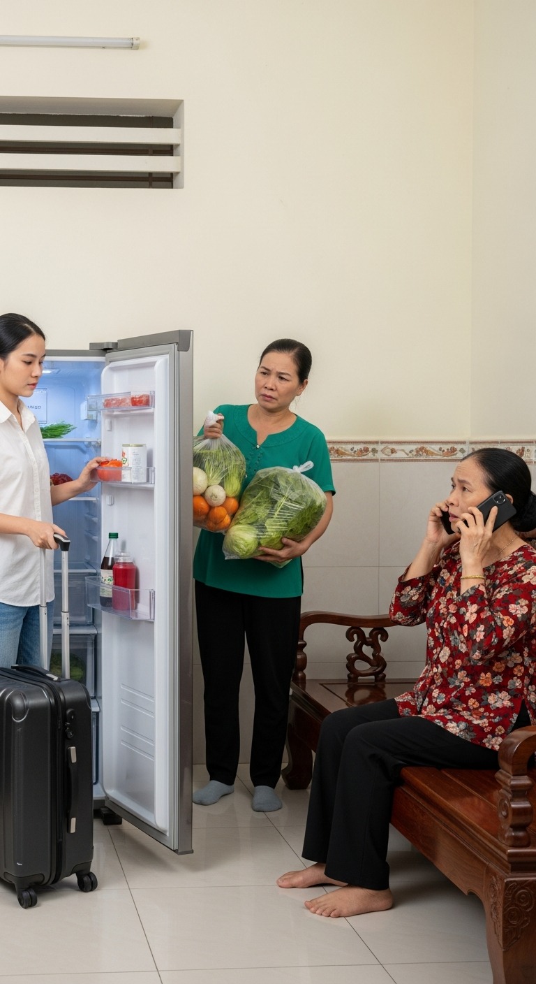 Diễm không ở nhà, nhưng cuối mỗi tháng đều về. Không phải thăm mẹ thăm anh, mà là… vét sạch tủ lạnh.