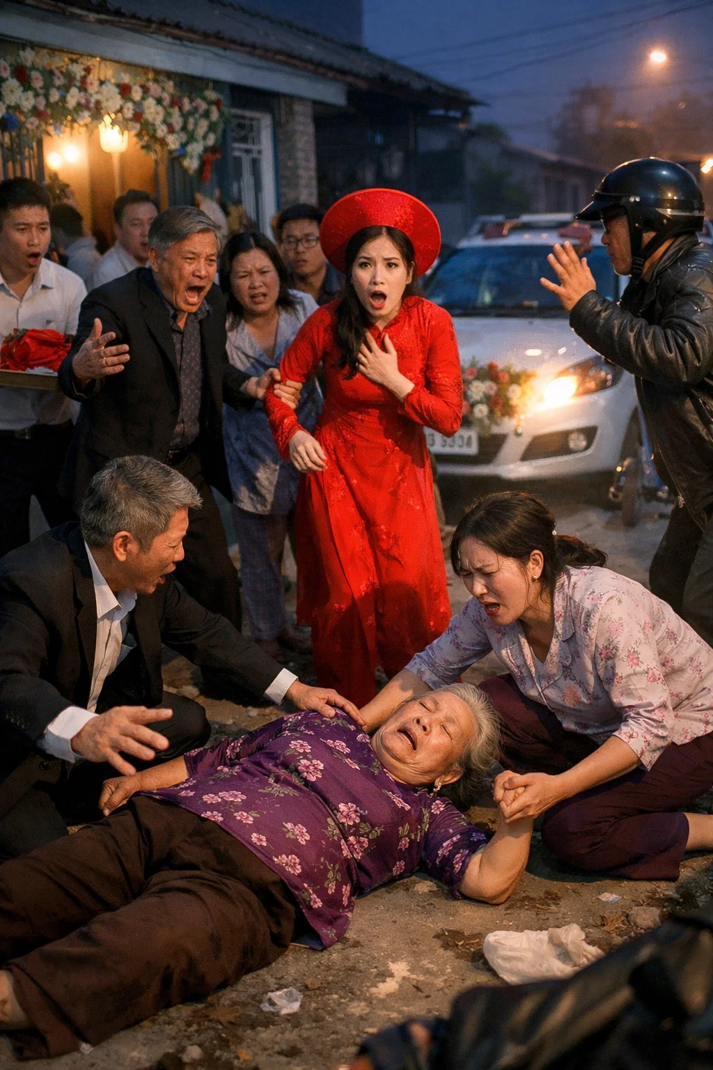Đi đầu là bà Hạnh – mẹ của chú rể. Bà bước xuống xe với bộ áo dài gấm đỏ rực, cổ đeo chuỗi ngọc trai to bản, bàn tay đeo đầy nhẫn vàng. Đôi mắt bà sắc như dao, đảo quanh con ngõ tối om với vẻ khinh miệt không thèm che giấu. Bà cố tình chọn giờ này. Không phải vì ngày lành tháng tốt. Mà vì bà muốn cả xóm phải biết rằng cô dâu này “không xứng đáng” được cưới đàng hoàng.