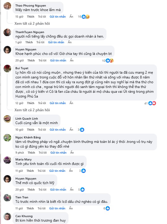 Sau khi thông tin Kim Hiền ly hôn được chia sẻ, nhiều người gửi lời động viên đến nữ diễn viên. Bên cạnh đó, một số khán giả xót xa khi sao nữ 8X gặp biến cố trong chuyện tình cảm và mong cô mạnh mẽ vượt qua