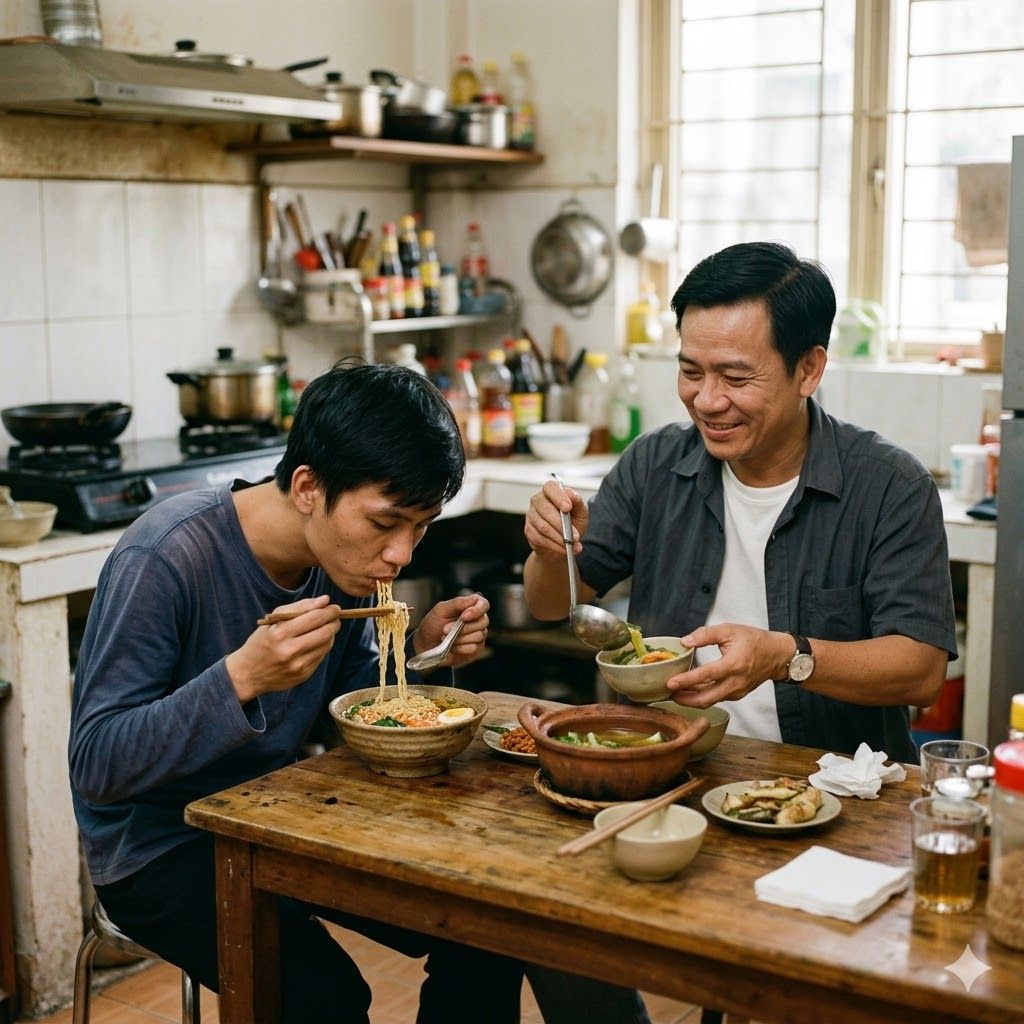 Nam ngồi xuống, đầu cúi thấp đến mức như muốn chạm vào mặt bàn. Anh cảm thấy nh:ục nh:ã hơn là sợ hãi. Sự t:ử tế đột ngột này như một nh:át d:ao kh:ứa vào lòng tự trọng cuối cùng của một gã trai mới lớn. Khi bát súp nóng hổi được đặt trước mặt, kèm theo một ly nước ấm, Nam vẫn không dám cầm thìa.