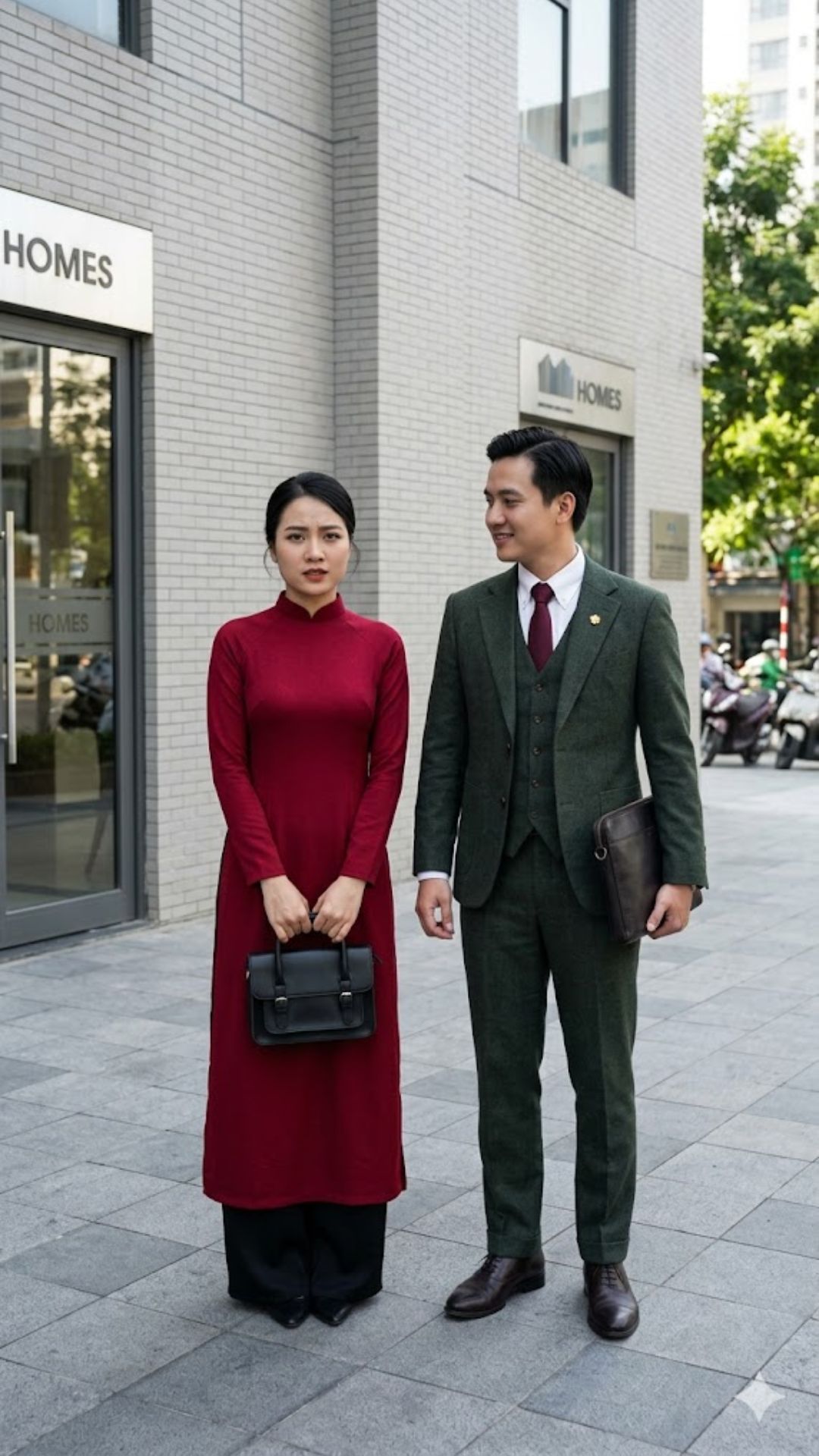 Anh mặc vest chỉnh tề, dáng vẻ tự tin, ánh mắt sắc sảo. Mỗi bước đi đều toát lên sự điềm tĩnh và bản lĩnh.