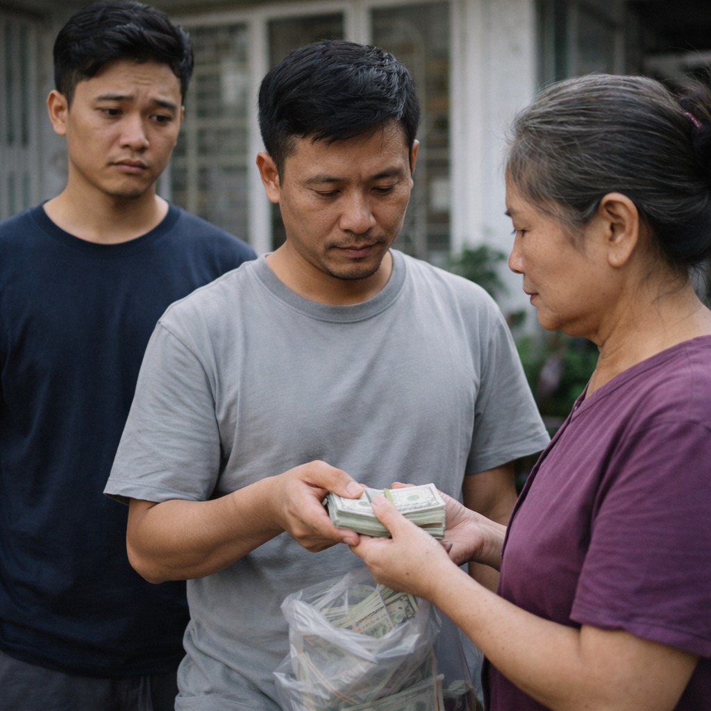 Tôi nhìn ra sân, thằng thứ đang lẳng lặng xếp nốt những bộ quần áo lao động bạc màu vào chiếc túi du lịch cũ kỹ. Nó không gào thét, không trách móc một lời nào về số tiền hai tỷ. Cái nó đau, là sự phản bội từ người mẹ mà nó đã tận tụy chăm sóc từng bát canh, chén thuốc suốt mười mấy năm qua.