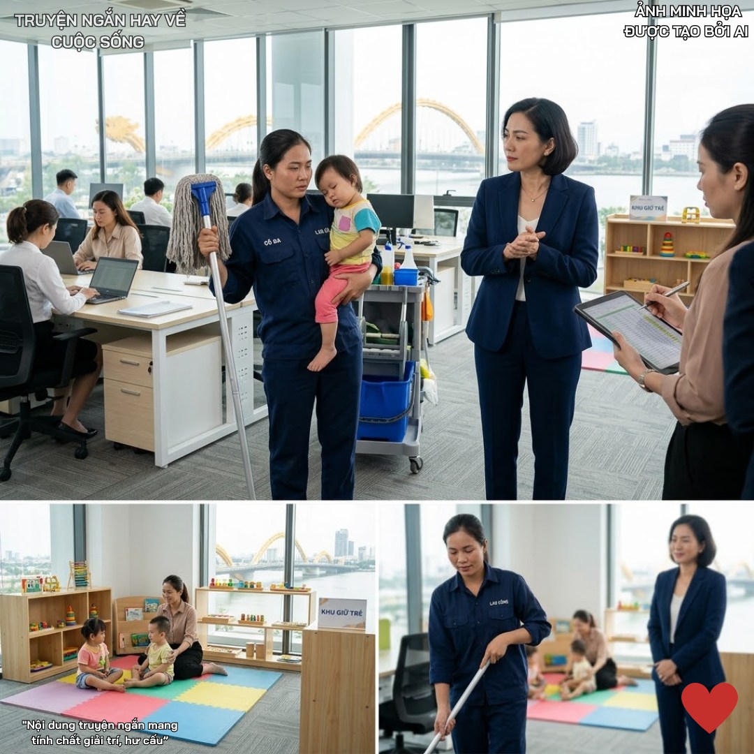 Hà, lúc đó đang dọn dẹp khu vực hành lang bên ngoài, đã vô tình nghe thấy toàn bộ cuộc đối thoại qua khe cửa khép hờ. Trái tim cô thắt lại. Cô nghĩ đến cu Bo, nghĩ đến những đứa trẻ của các đồng nghiệp khác, và nghĩ đến hơi ấm mà nơi này đã mang lại cho những mảnh đời lầm lũi như mình. Hà biết mình chỉ là một nhân viên vệ sinh thấp cổ bé họng, nhưng một sức mạnh phi thường từ tình mẫu tử và lòng biết ơn đã thôi thúc cô.