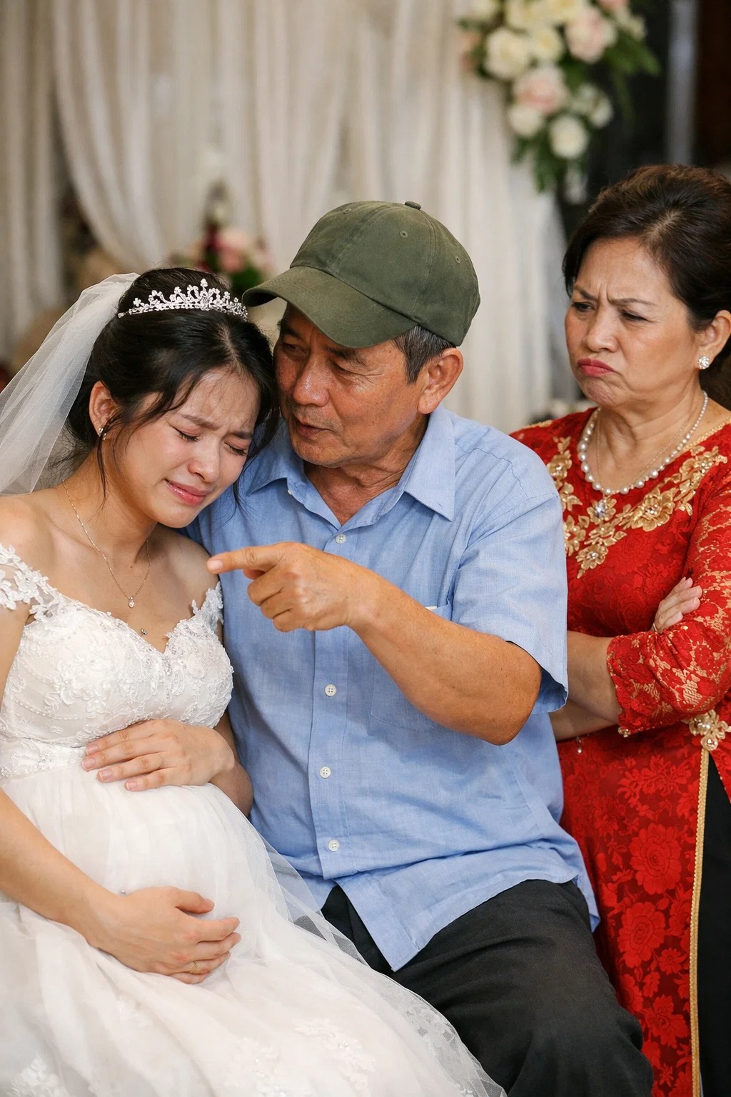 Tiếng bà vang lên giữa sân, khách khứa xung quanh im phăng phắc, chỉ còn nghe tiếng gió lùa xào xạc qua tấm phông cưới. Thủy nghe thấy, bật khóc nức nở trong phòng. Mẹ cô ho///ảng loạ///n, chạy vào ôm con, còn bố cô đứng ch///ết trân ngoài sân, hai bàn tay siết chặt.