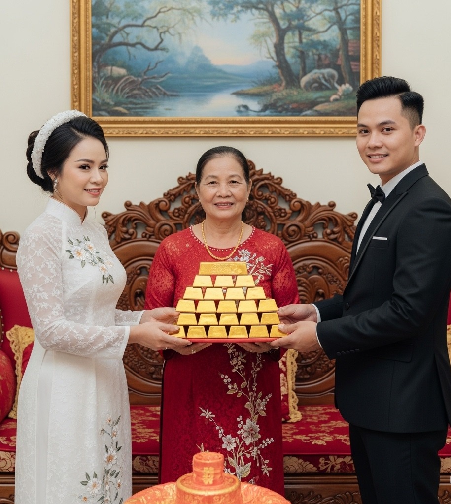 Bà Lan mở chiếc hộp gỗ, bên trong là 20 cây vàng SJC óng ánh được xếp ngay ngắn. Tiếp đó, bà đặt xấp tiền mặt trị giá 1 tỷ đồng lên trên khay trầu cau của nhà trai. Cả sân cưới ồ lên kinh ngạc. Những lời xì xào mỉa mai ban nãy bỗng chốc im bặt, thay vào đó là những ánh mắt ngỡ ngàng, thán phục và cả sự xúc động.