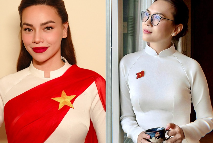 Mới đây, Hồ Ngọc Hà thu hút nhiều sự chú ý khi xuất hiện trong đêm nhạc Tôi Yêu Tổ Quốc Tôi. Nữ ca sĩ diện áo dài trắng đơn giản mà thanh lịch, quàng thêm dải lụa đỏ cùng ngôi sao năm cánh trên ngực.