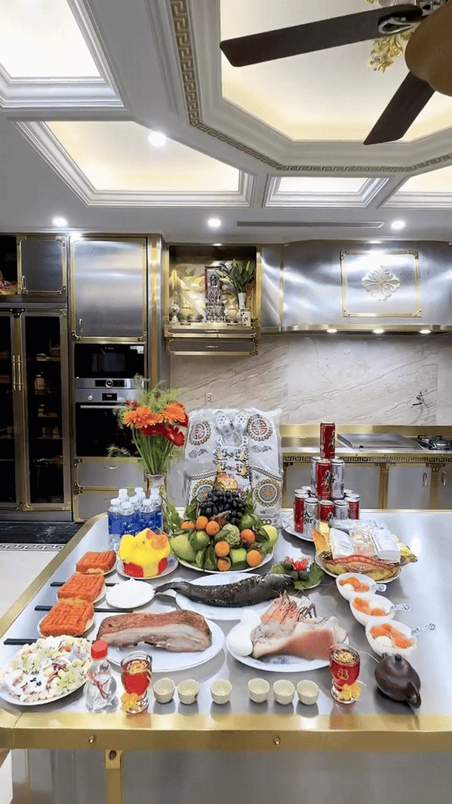 CEO Mailisa cũng chuẩn bị rất nhiều đồ lễ để dâng lên bàn thờ Thần Tài – Thổ Địa của gia đình. Bàn thờ được làm bằng gỗ, có kích thước cao và rộng vượt trội so với các mẫu thông thường, tạo cảm giác uy nghi và sang trọng. Xung quanh được trang trí cẩn thận với nhiều loại hoa đặc trưng như hoa lan, hoa đào, hoa loa kèn, hoa đồng tiền… Lễ vật dâng gồm đầy đủ các món mặn như cá lóc, thịt lợn quay, tôm, trứng, cùng các món ngọt và đồ chay như bánh mứt, kẹo lạc, bánh trôi, xôi gấc. Toàn bộ đều do chính tay vợ chồng Mailisa tự bày biện và sắp xếp, thể hiện sự chỉn chu và lòng thành kính trong từng chi tiết.