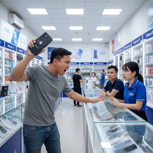 “Vì sao các anh lại bán cho vợ tôi một cái điện thoại hơn bốn mươi sáu triệu? Một người phụ nữ nội trợ, đâu có thu nhập gì! Các anh có biết trong nhà tôi, đồng tiền nào cũng phải tính toán từng bữa cơm, từng gói sữa cho con không? Trả lại tiền đây!”