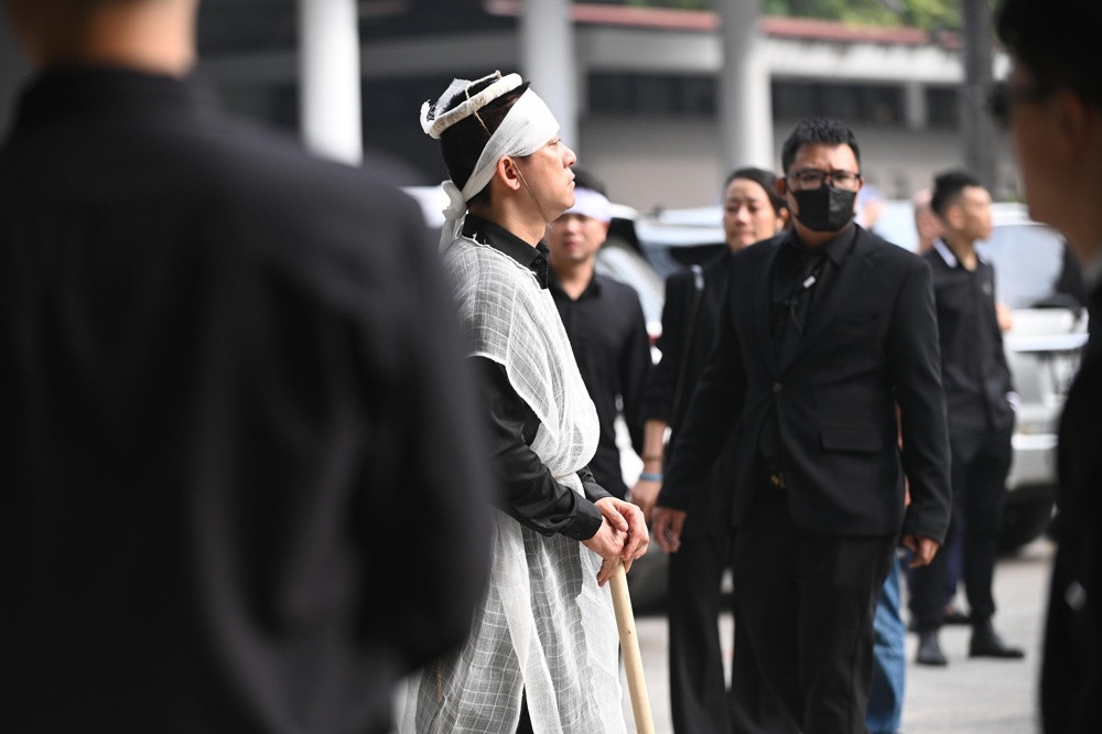 Tuấn Hưng và gia đình, gồm vợ và 3 con tại đám tang của mẹ nam ca sĩ. Ảnh: Hạ Vy
