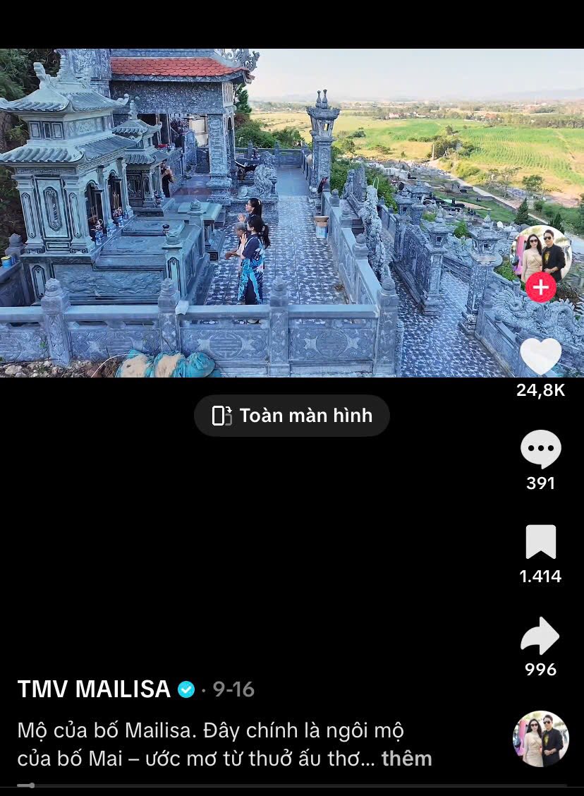 MXH xôn xao hình ảnh Mailisa xây lăng mộ cho người bố đã khuất rất to và hoành tráng. Nhiều người để lại bình luận trái chiều xung quanh vấn đề này, ý kiến của bạn ra sao? Xin mời cho ý kiến!
