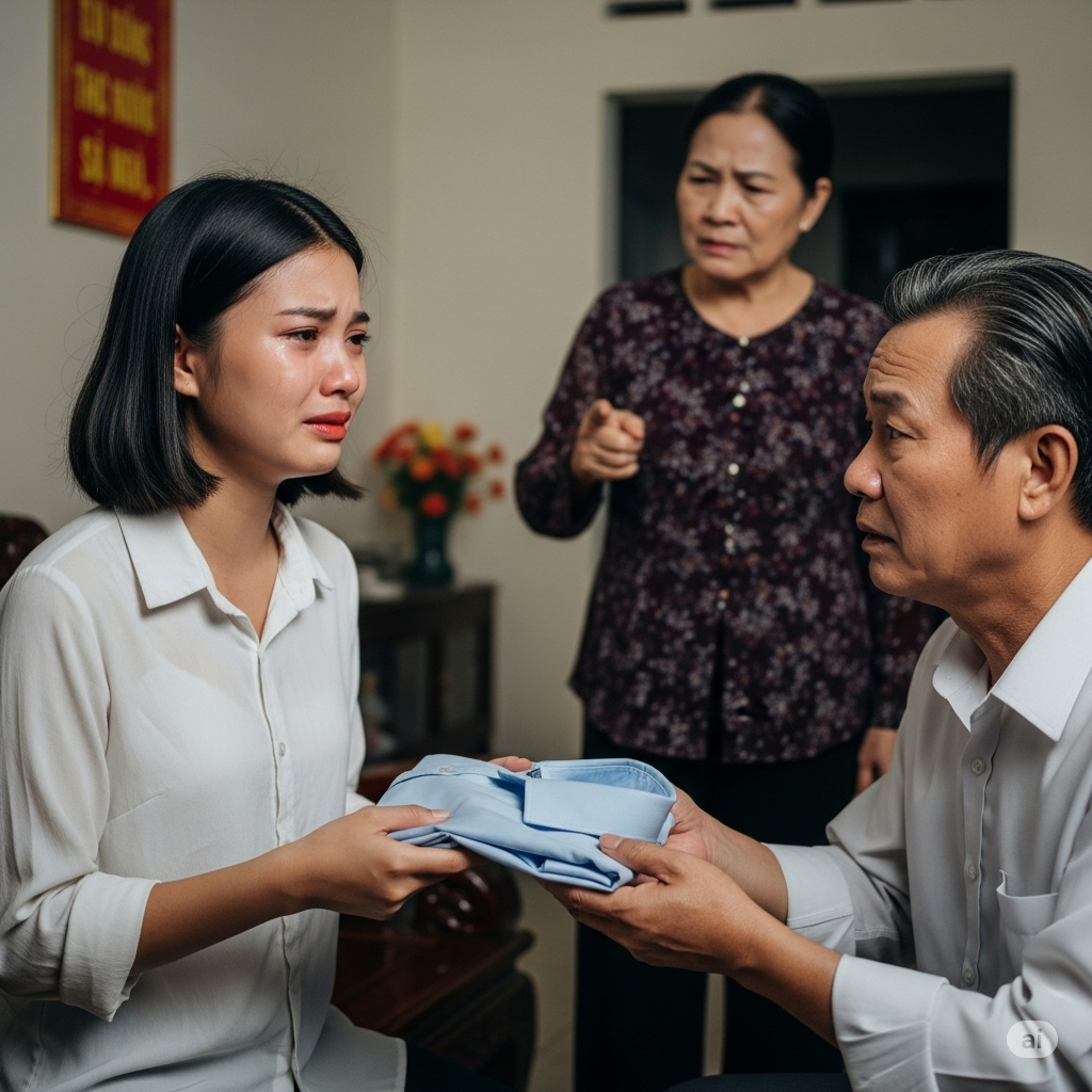 “Anh nhìn đi! Em chỉ mua một cái áo cho bố, mẹ lại giấu đi như thể em phạm tội. Em còn quyền được hiếu thảo với cha mẹ ruột mình không?”