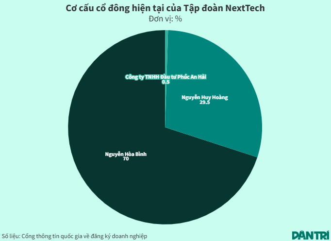 Đến ngày 31/10/2023, vốn điều lệ của NextTech vẫn giữ nguyên, song cơ cấu cổ đông có thay đổi. Ông Nguyễn Hòa Bình tiếp tục nắm giữ 70% vốn điều lệ, trong khi tỷ lệ sở hữu của ông Nguyễn Huy Hoàng giảm xuống còn 29,5%. Đáng chú ý, Công ty TNHH Đầu tư Phúc An Hải xuất hiện với tư cách cổ đông mới, nắm 0,5% vốn của NextTech. Từ tháng 4/2024 đến nay, doanh nghiệp do ông Đào Mạnh Dũng (SN 1986) giữ chức vụ Tổng Giám đốc kiêm Người đại diện pháp luật.