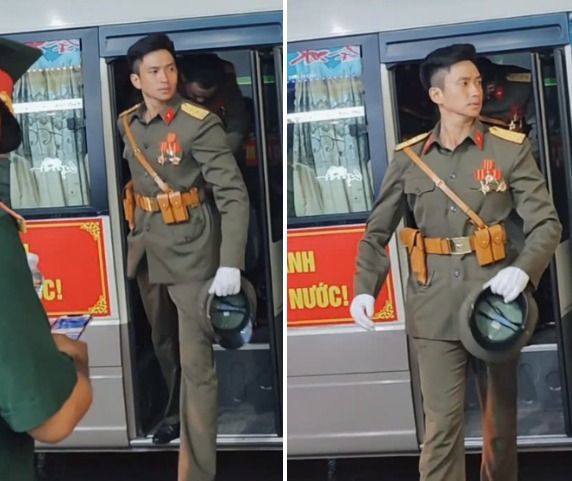 Thần thái của Lê Hoàng Hiệp vừa nghiêm nghị, chuẩn mực của một quân nhân, vừa toát ra sự điềm đạm cuốn hút khiến bất kỳ khoảnh khắc nào cũng thành cảnh phim điện ảnh.