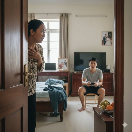 — Mẹ ơi, chắc ảnh dậy rồi mà chưa ra… để con vào xem.
